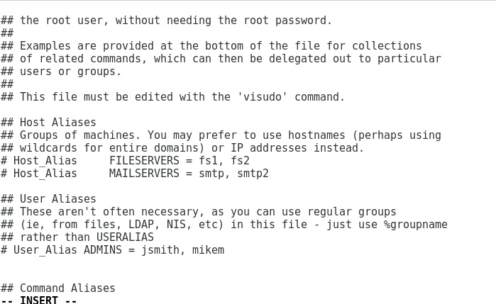 sudoers 파일이 오픈되면 방향키를 사용해서 아래쪽으로 내려갑니다.