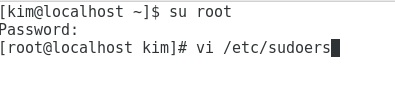root 권한을 입력하기 위해서 vi /etx/sudoers 명령어를 입력해서 vi로 파일을 수정해야 합니다.